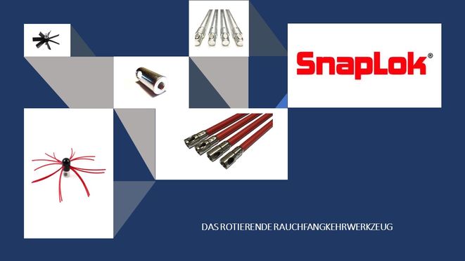 Das SnapLok Bürstensystem mit drehbaren Stangen ist neu in Österreich – in England und vielen anderen Ländern ist es jedoch schon einige Zeit im Einsatz. SnapLok ist für die Kesselkehrung (mit Adapter für vorhandene Bürsten) sowie für die Kehrung von Verbindungsleitungen, Poterien, Rauchrohren und Fängen geeignet. Zwei bis drei Bögen bis zu 90° sind kein Problem. Auch zum Ausschlagen von verpechten gemauerten Fängen und Fängen mit glatter Innenfläche eignet sich das System ausgezeichnet. Der Arbeitsradius beim Kunden wird durch die 1 Meter langen Stangen auch etwas kleiner. Angetrieben werden die Stangen einfach durch den Akkubohrschrauber.